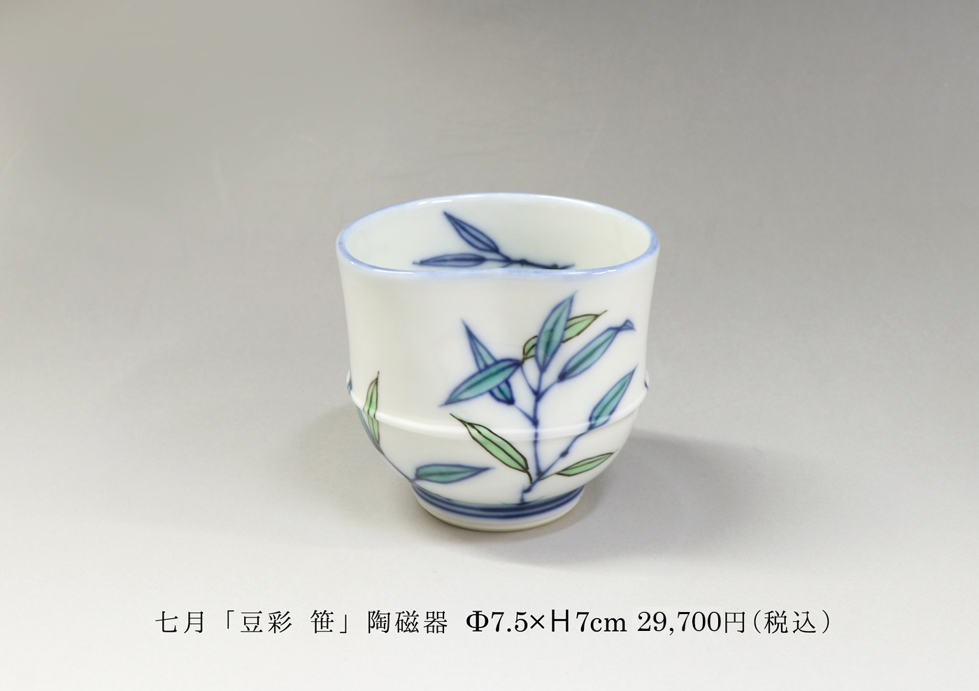「昔からある祥瑞の模様にブルーの色を付けて雨を思ってもらう」趣向。