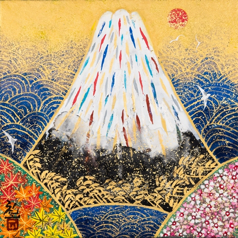 橘京身「午」朱墨/亀紋宣  17×13cm永樂而全「富士梅 香合」H5.5×Φ7.6cm平松礼二「白岳春秋」日本画2号スクエア