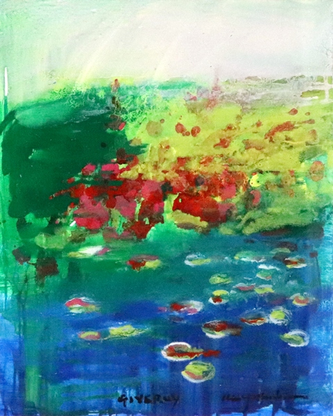 透明感のある鮮やかな色彩を、ペインティングナイフで大胆に重ね、爽快感と喜びに満ち溢れた世界を築き上げる