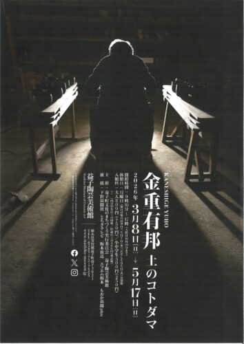 金重有邦(1950-)は備前で制作する陶芸家です。武蔵野美術大学彫刻科で学んだ後、父・素山(1909-1995)のもとで本格的に陶芸を始めました。これまで白磁や唐津、高麗茶碗など、備前にとどまらず様々な土を用いた陶芸作品に取り組んできました。その形は、食器、茶碗、大壺などの器形から塔形のオブジェまで多岐にわたっており、独特なゆらぎのある造形が特徴的です。